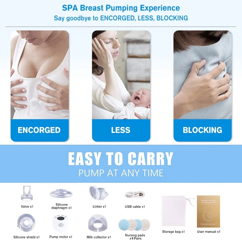 ⭐Удобно: Электрический молокоотсос портативный и заряжается от аккумулятора 1000 мАч для всасывания 2-4 раз. Вес всего 15 унций и можно носить в сумка для детской бутылочки. Идеально подходит для мамы на ходу. Вы также можете прокачивать молоко во время работы по дому.