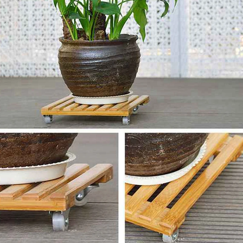 Отзывы о 1 шт. бамбуковая подставка для растений с колесами и 2 12-дюймовая деревянная