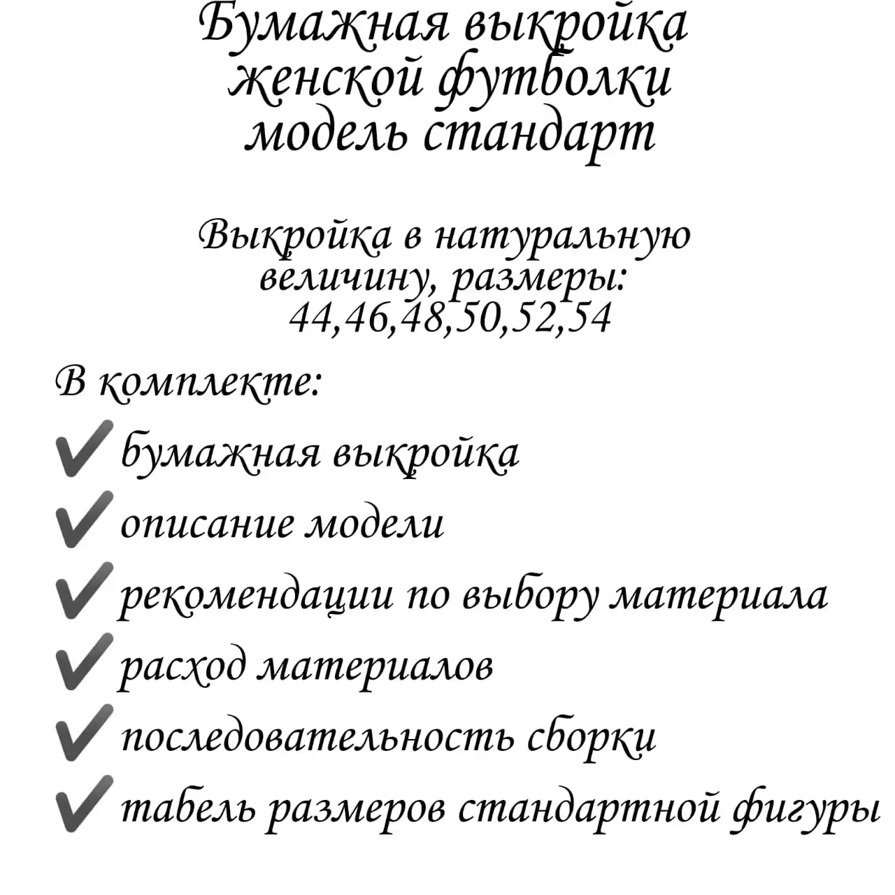 -Pattern on paper, on 1 sheet sizes 44,46,48,50,52,54