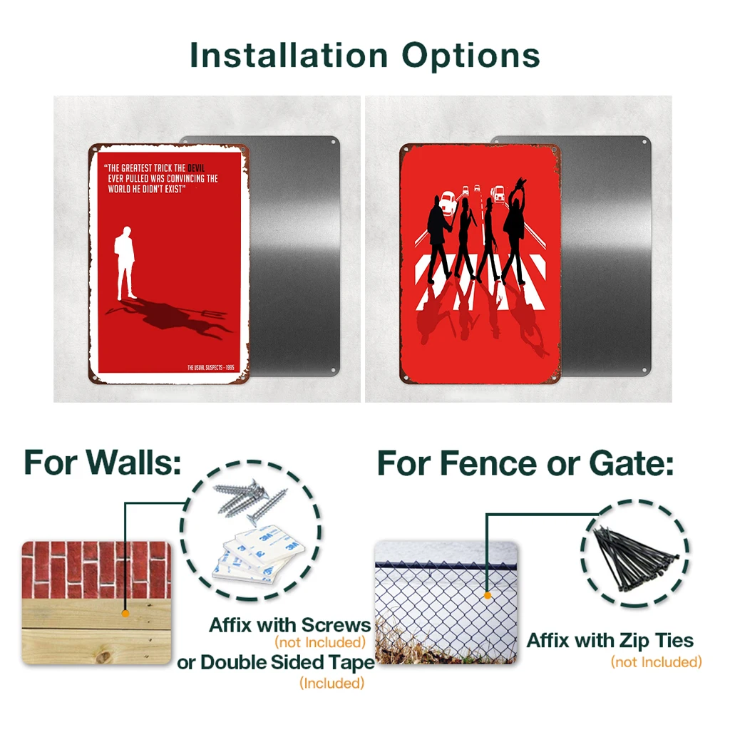 (4). Оловянный знак предварительно просверленные отверстия для легкой подвешивания, можно положить на стол, рядом с кроватью или повесить на стену и т. д.