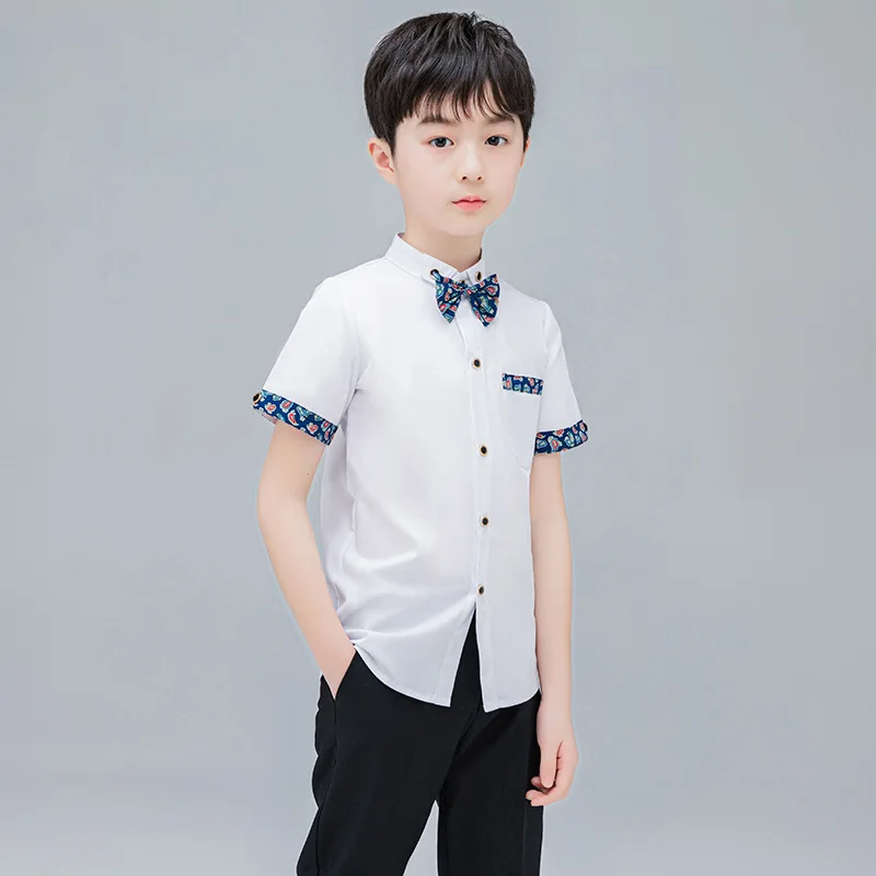 Отзывы о Школьная форма детская блузка рубашка с цветами для мальчиков коротким рукавом и