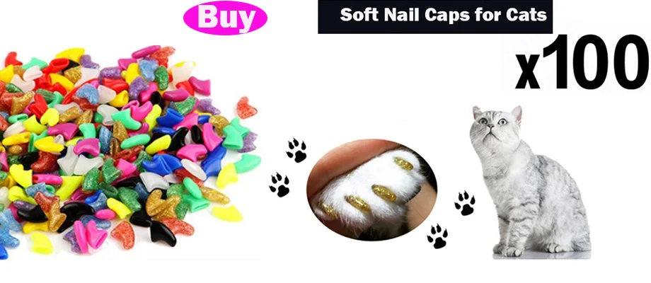Отзывы о 20/100 шт. новые модные красочные кошачьи колпачки для ногтей мягкие Когти кошек