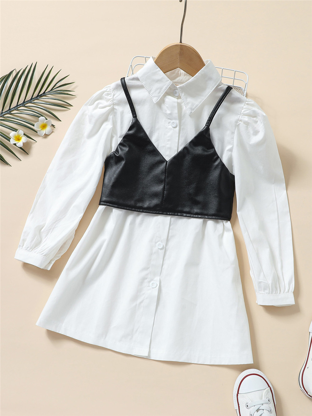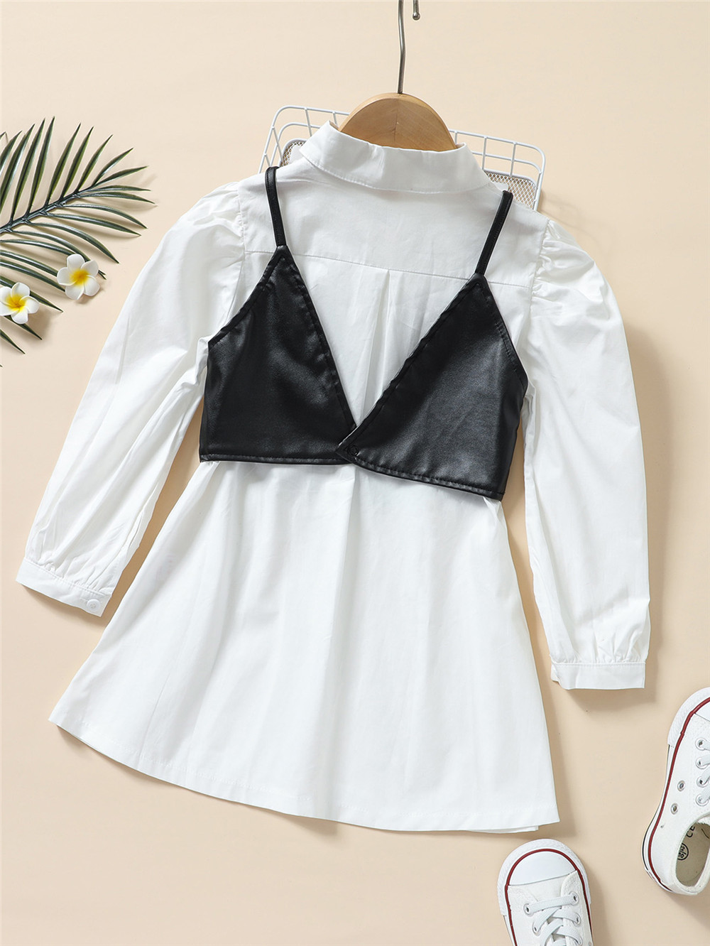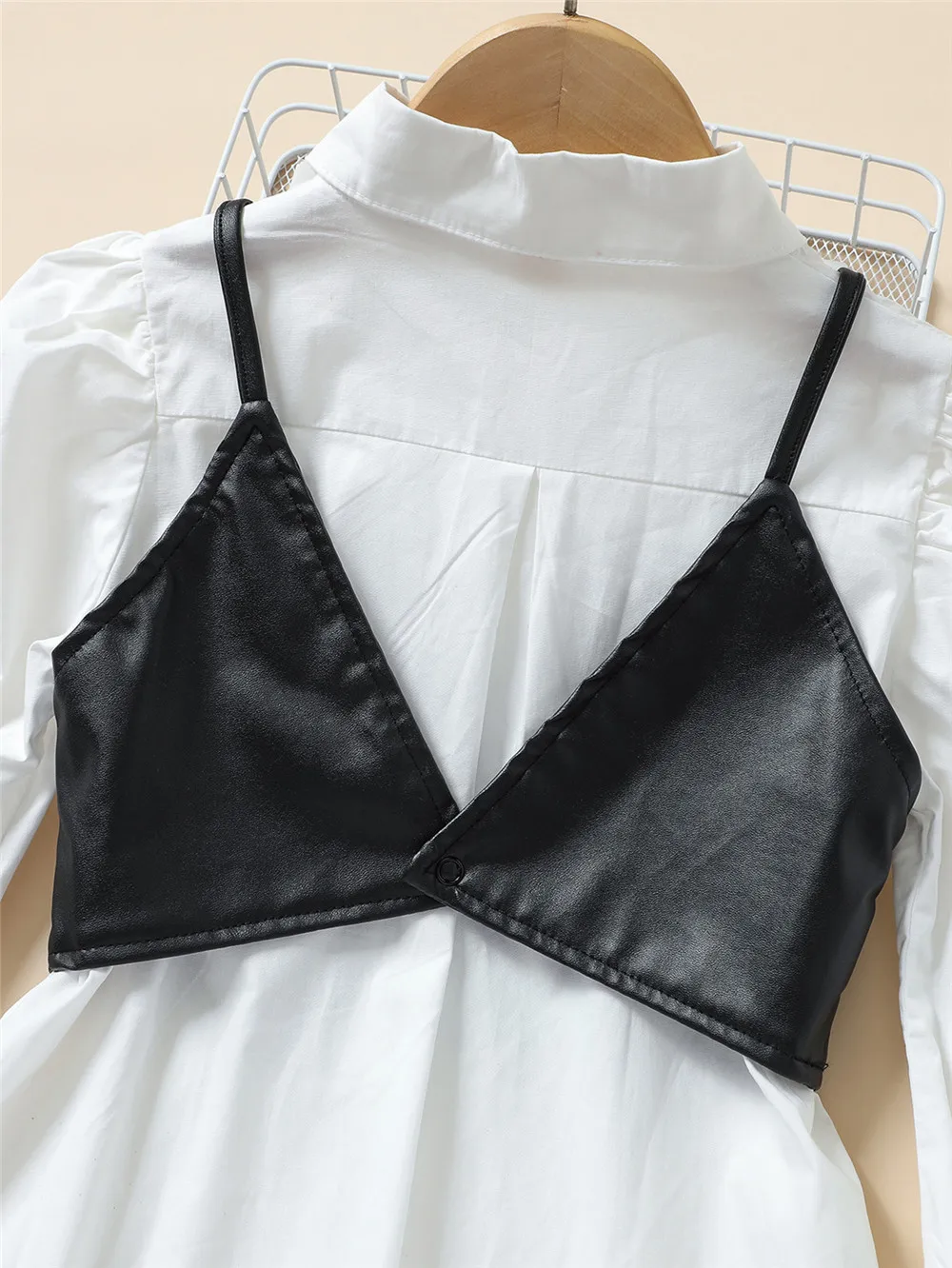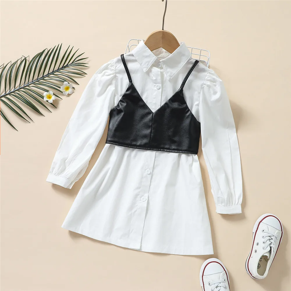 Модное платье с длинными рукавами для маленьких девочек; Рубашка и кожаная майка