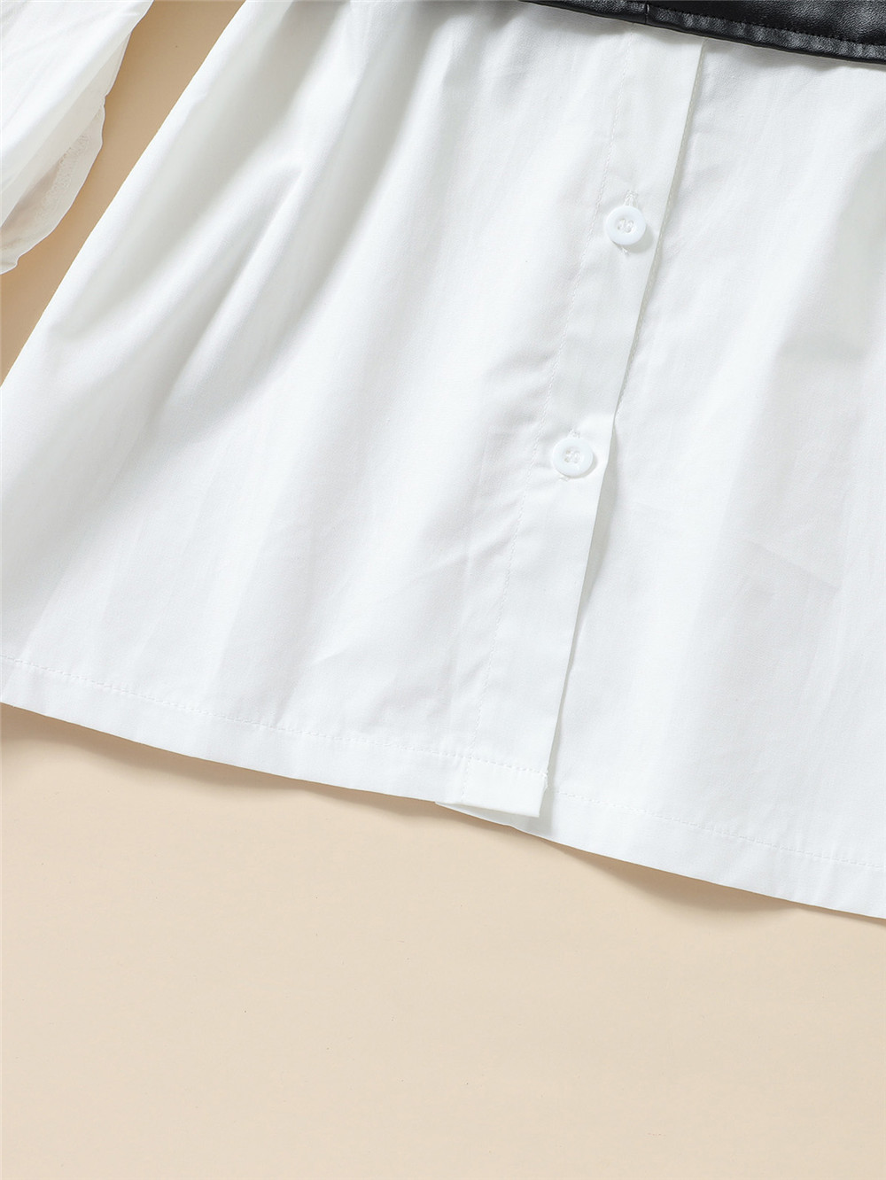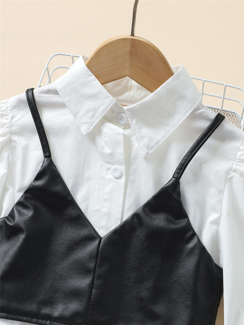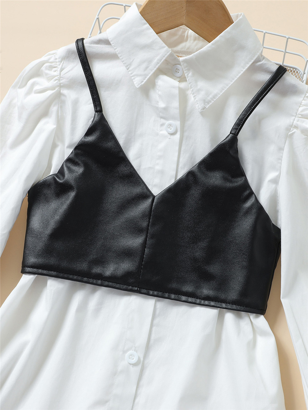 Модное платье с длинными рукавами для маленьких девочек; Рубашка и кожаная майка