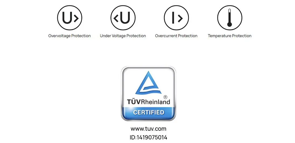 Безопасная TÜV Rheinland-сертифицированная зарядка
