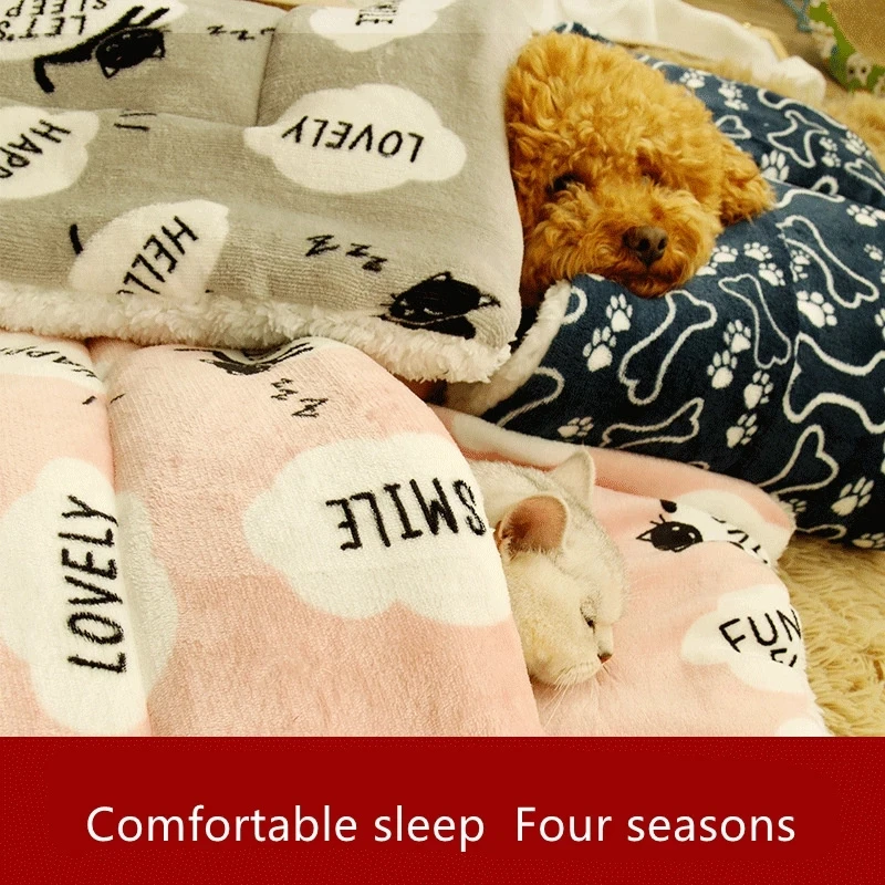 Зимняя теплая мягкая подушка для питомца собаки, фланелевый хлопковый матрас с принтом для кошек и собак, коврик для щенка, одеяло для кровати, подушка для собаки