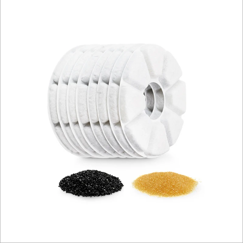 Фильтр для фонтана воды фильтрует волосы и остатки, удаляет запахи и смягчает воду, которая легко разбирается и очищается.