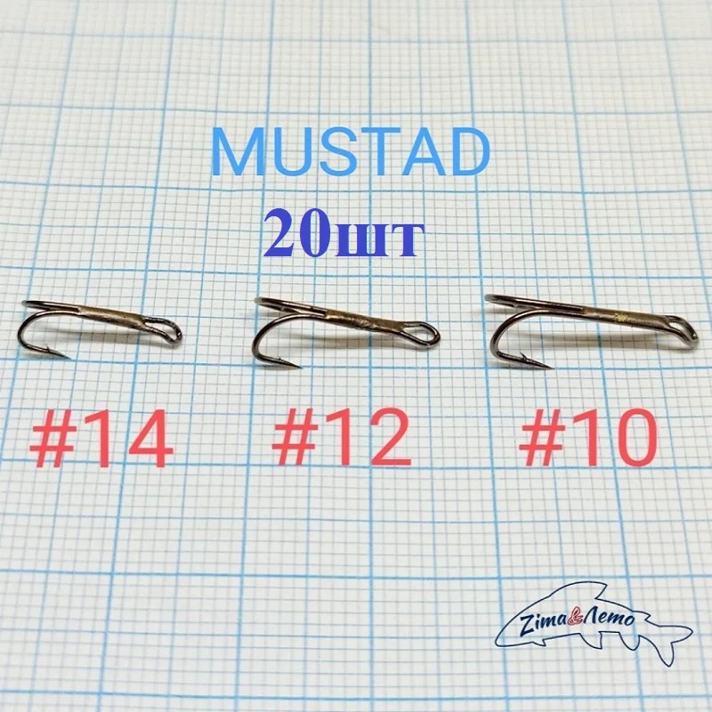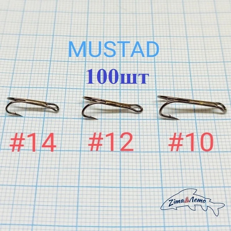 Отзывы о Крючок двойной 20/100шт. паянный MUSTAD черный никель. #14 12 10. Для нахлыстовых мушек -