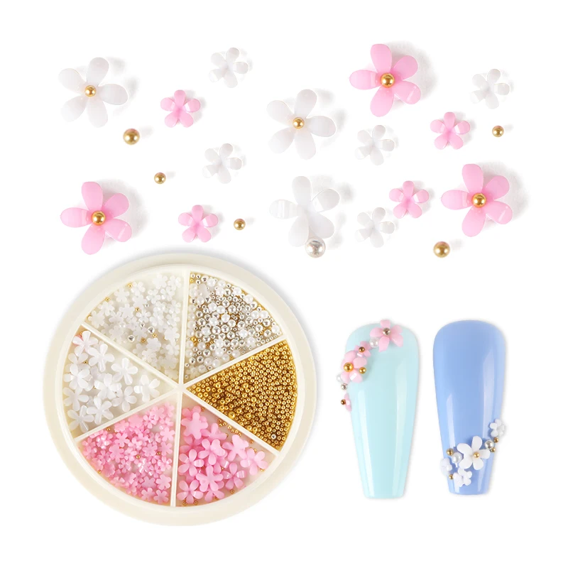 Белый розовый акриловый цветок украшения для ногтей смешанные размеры стальные шарики для ногтей принадлежности для профессиональных аксессуаров для дизайна маникюра