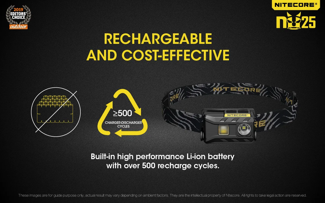 Отзывы о Налобный фонарь NITECORE NU25 360 люмен перезаряжаемый встроенный аккумулятор