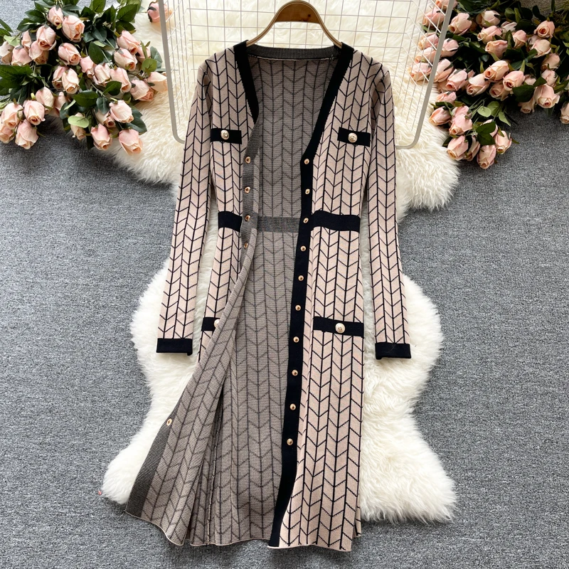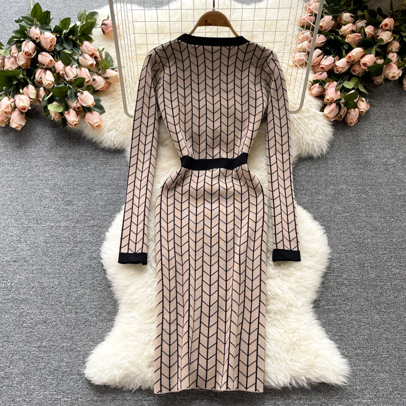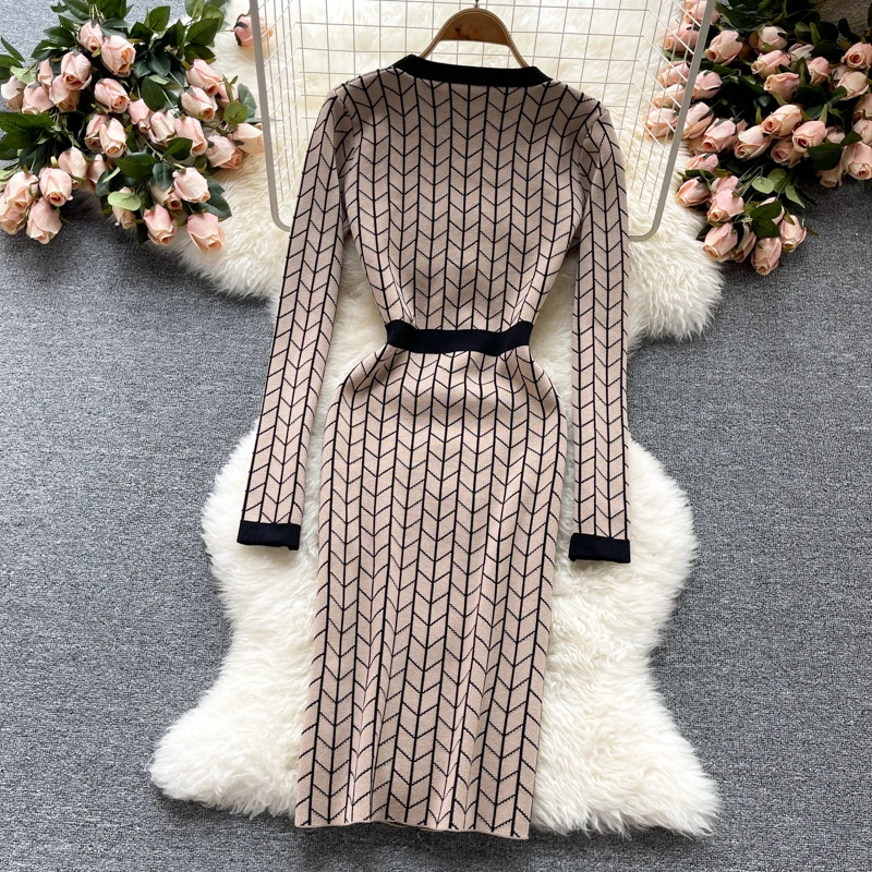 Отзывы о Платье-Свитер женское трикотажное облегающее на пуговицах с V-образным вырезом -