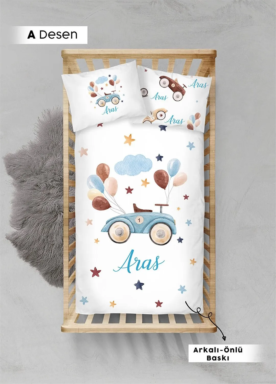 Этот продукт, специально для вас, изготовлен из 100% хлопка органического хлопка атласной ткани и напечатан с органическими сертифицированными красителями. Любой материал, используемый в его ткани и принте, не вреден для здоровья, поэтому вы можете использовать его для вашего ребенка с первого дня, душевно.В стандартном наборе нет простыни. Есть только пододеяльник и две наволочки.