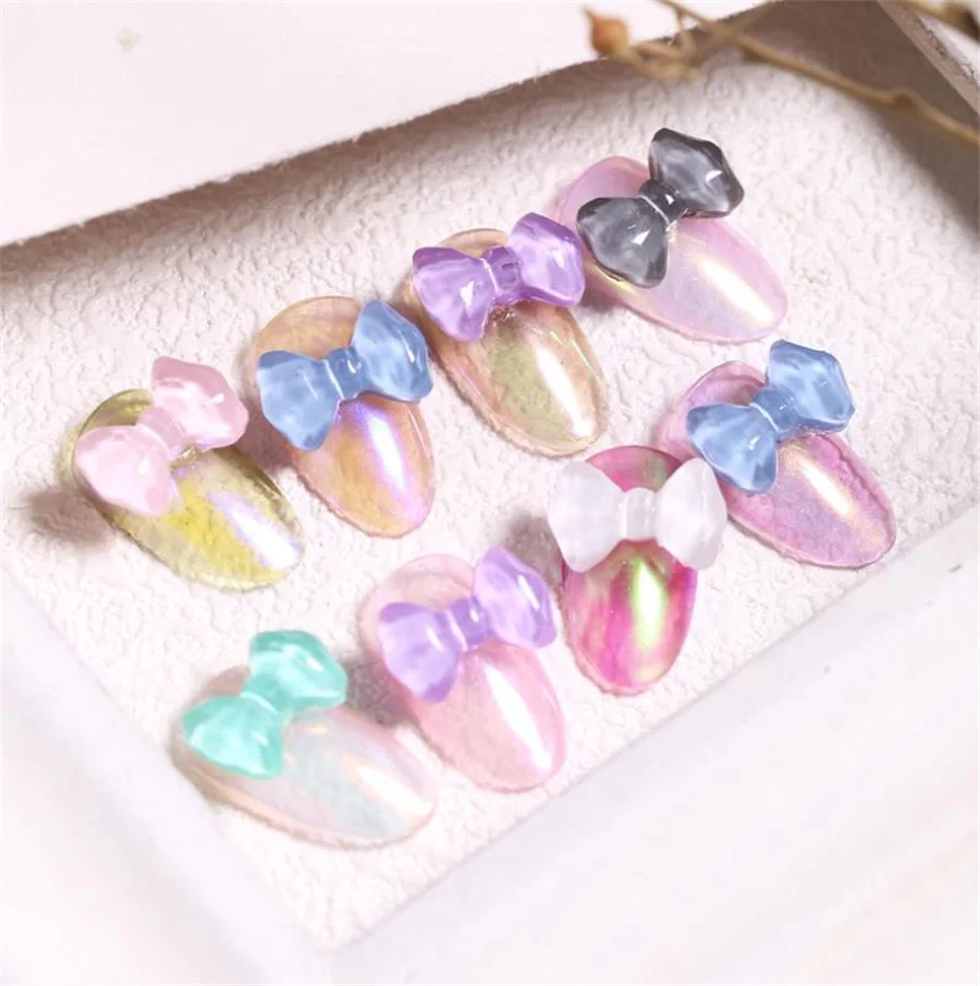 Отзывы о 10pcs Cute Bow 3D Nail Art Decorations Semi Transparent Candy Colorful Bowknots Japanese Ornaments DIY Manicure Accessories - купить по