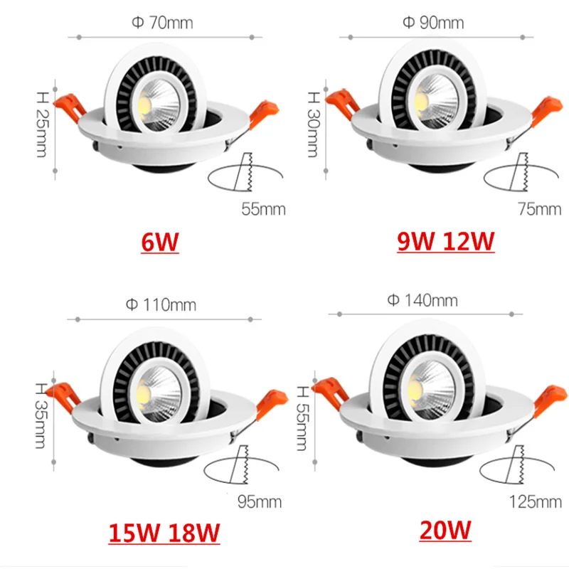 Отзывы о Поворотный на 360 градусов Светодиодный точечный светильник COB встраиваемый