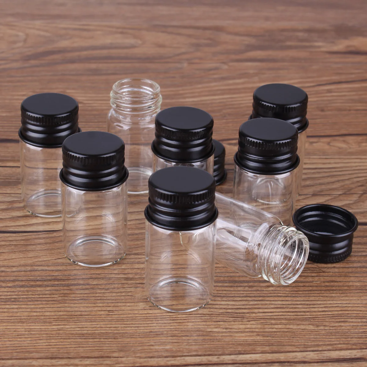 Отзывы о 10 шт. 7 мл 22*40 мм маленькие стеклянные банки с черными алюминиевыми крышками