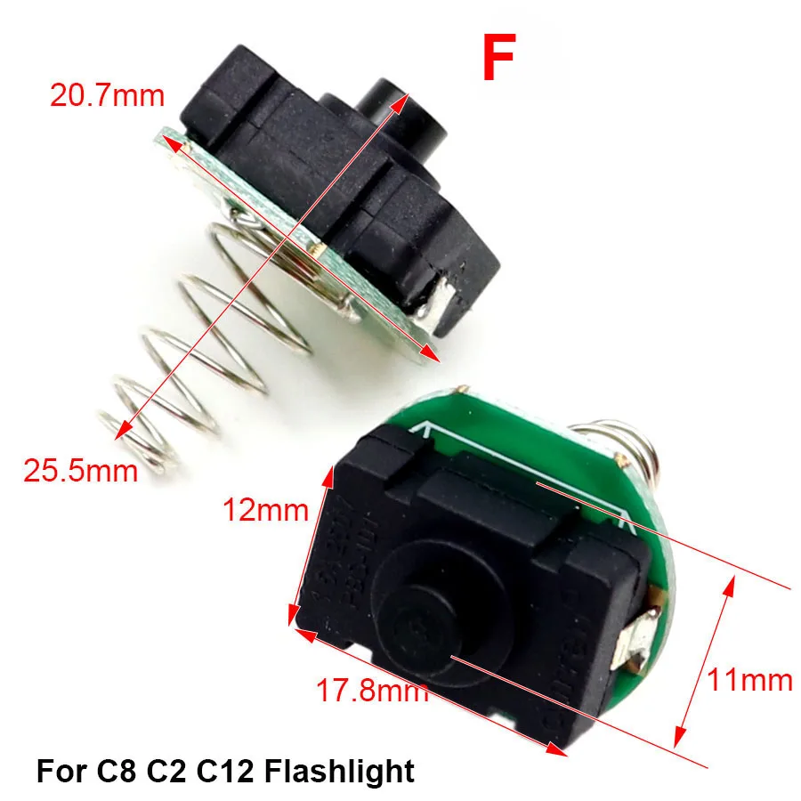 Светодиодный фонарик кнопочный переключатель ВКЛ., Электрический фонарь, задний переключатель T6 Q5 C8 501B 502, запасная деталь для ремонта, светодиодный фонарь.