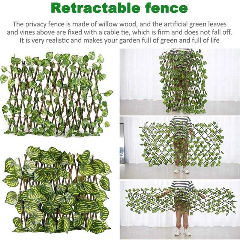 1. Высококачественные материалы: забор изготовлен из дерева, а искусственные зеленые листья и лозы закреплены на застежке-молнии, прочные и не отпадут. Это очень реалистично и делает ваш сад полон зеленого и полного жизни.