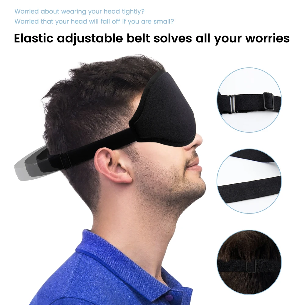 Наша маска для глаз разработана с регулируемой пряжкой эластичной лентой, которая подходит для людей с окружностью головы около 40-75 см (15,75-29,5 дюйма) вам не придется беспокоиться о том, что он зажмет вашу голову, потому что ремешок слишком короткий