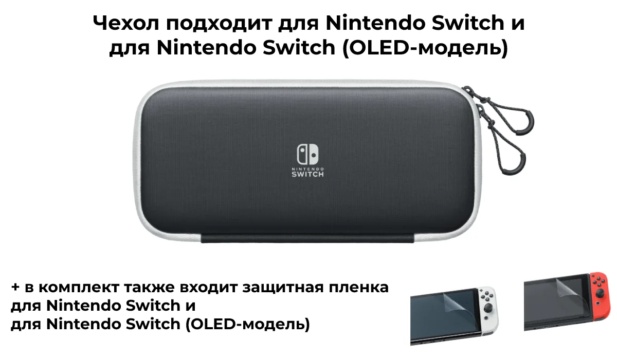 Носите свою консоль Nintendo Switch (OLED-модель) в специальном чехле! Особое покрытие изнутри будет поддерживать систему в чистоте, а защитная плёнка защитит экран от царапин.