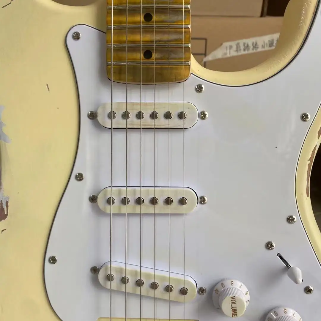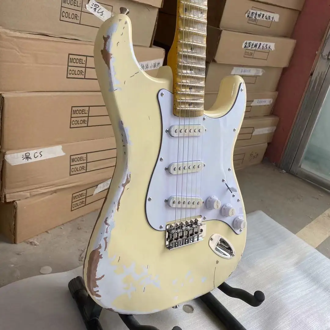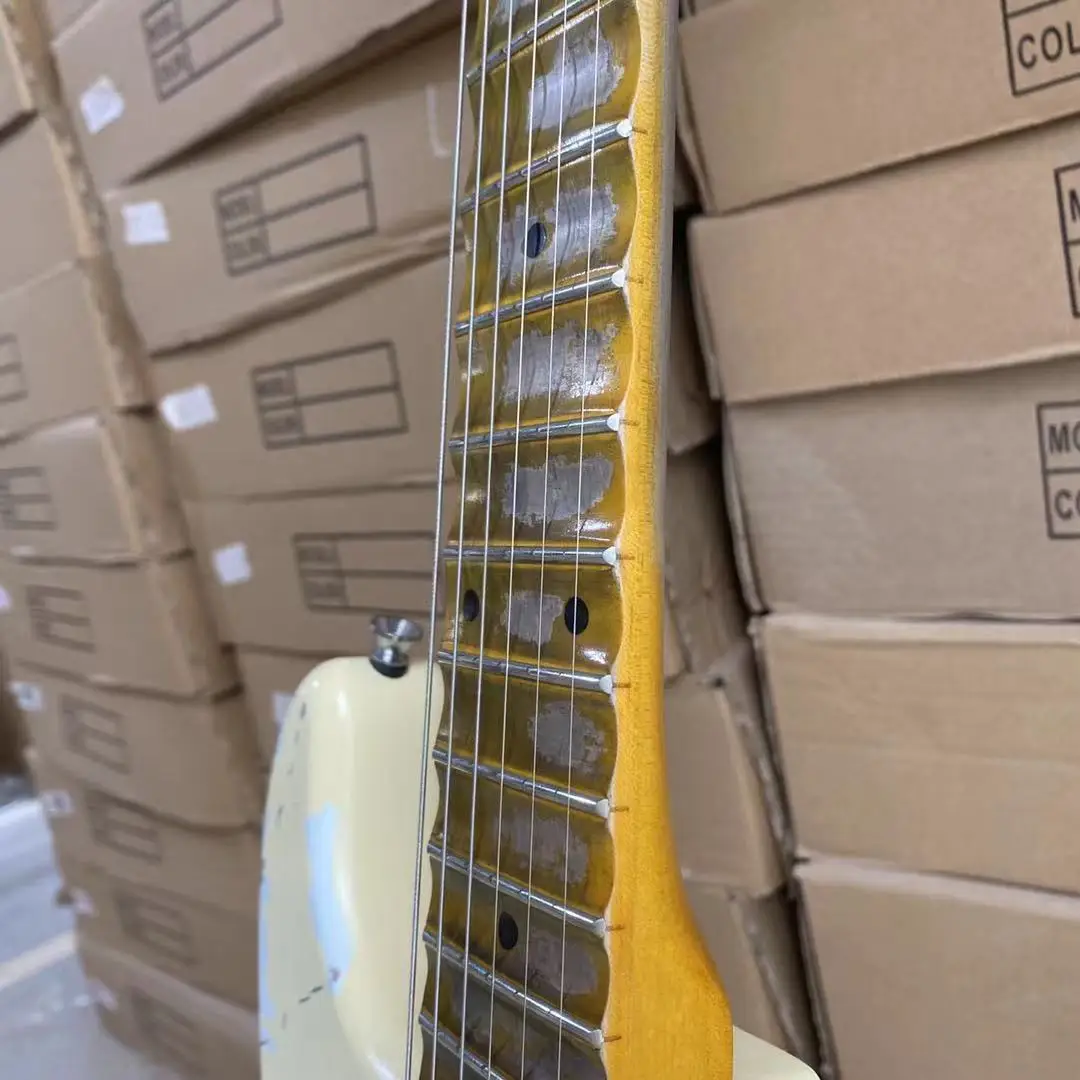 Состаренный Электрический крем, желтый цвет, склеенный клен, гриф, Олдер, гитарный корпус, высокое качество, бесплатная доставка