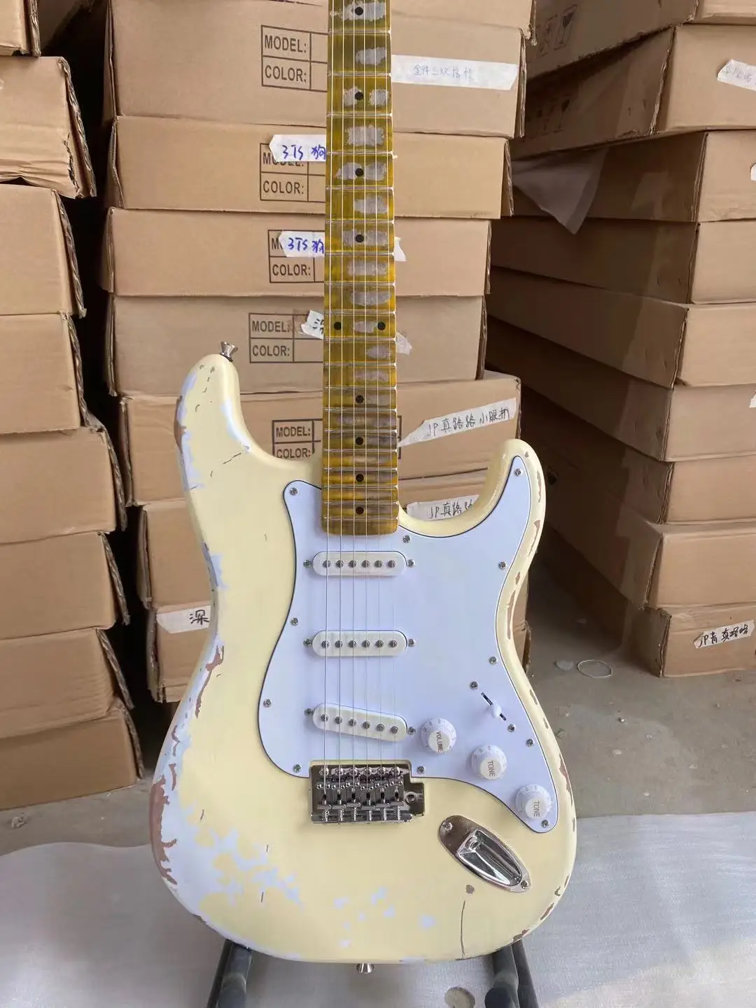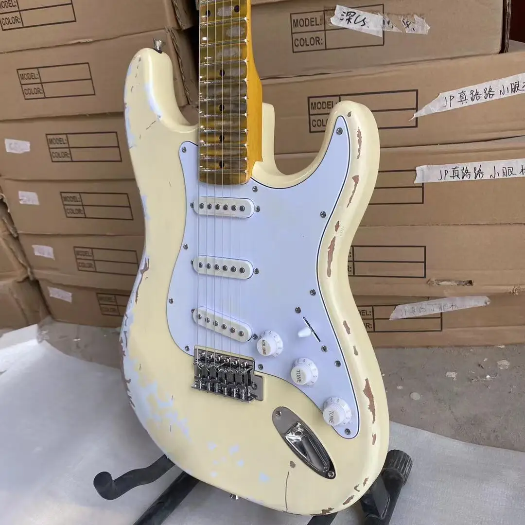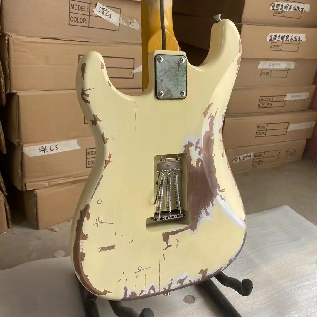 Состаренный Электрический крем, желтый цвет, склеенный клен, гриф, Олдер, гитарный корпус, высокое качество, бесплатная доставка