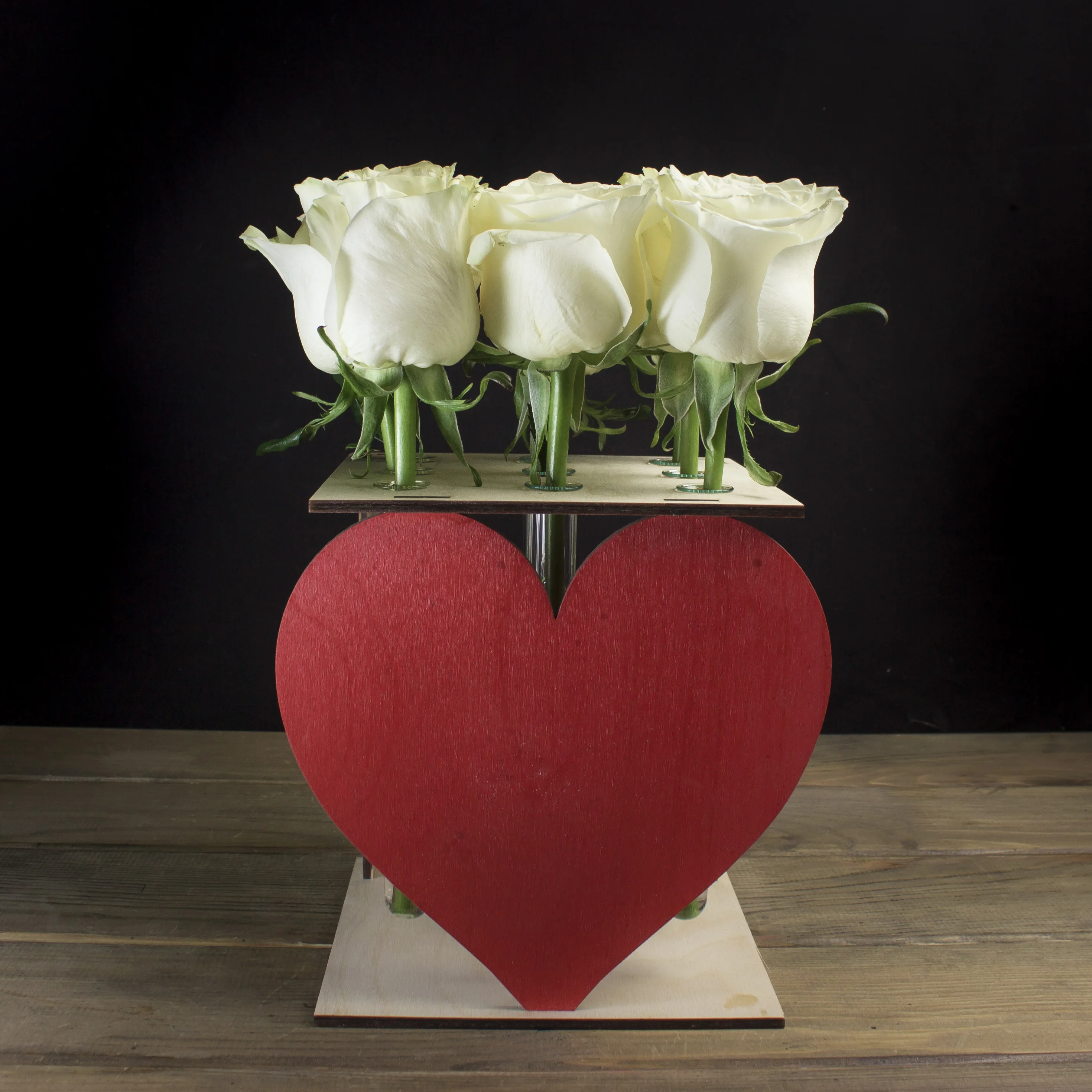 Ваза для цветов в виде подставки для стеклянных колб, которые вставляются в каркас вазы. Каждый цветок - в отдельную колбу (всего 9). Кроме как под розы вазу можно использовать также и для других цветов, например, тюльпанов или сухоцветов.