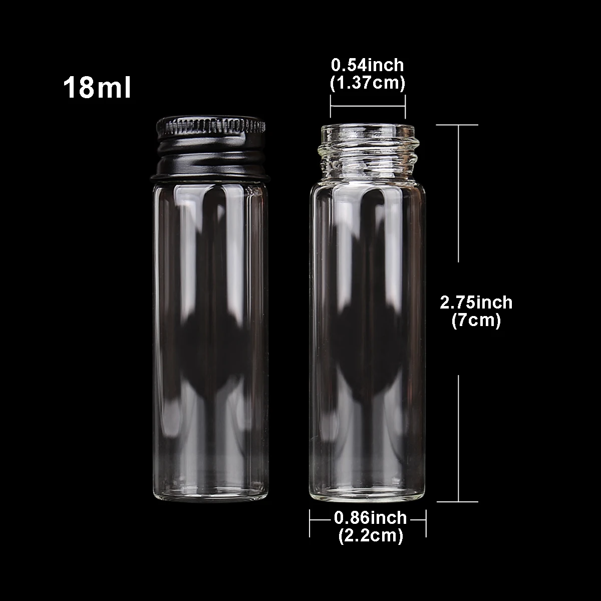 Отзывы о 10 шт. 18 мл 22*70 мм стеклянные банки бутылки для сообщений с черными алюминиевыми