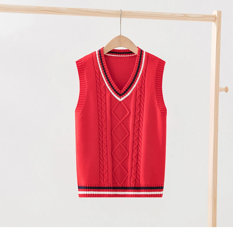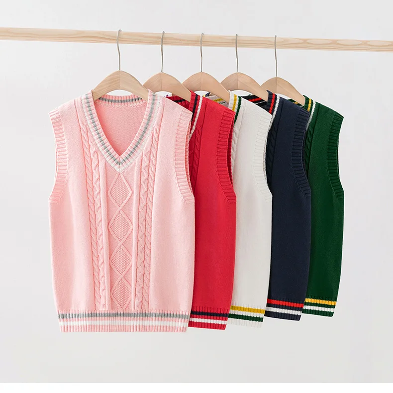 Свитера для девочек; Пуловер без рукавов; Свитер для мальчиков; Вязаный жилет; Школьная форма; Детский жилет с v-образным вырезом; Вязаная хлопковая одежда