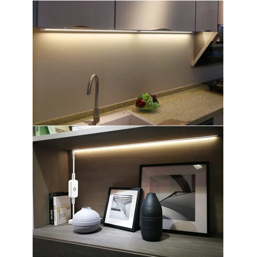 Светодиодный светильник COB с регулируемой яркостью, плавная сенсорная панель, 2835 ламповая лента, 220 В, 240 в, 12 В, Кухонный Светильник для кровати
