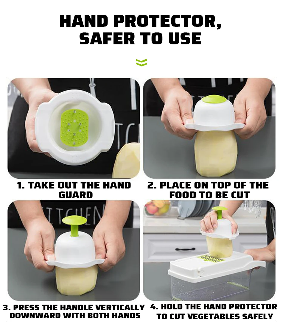 С помощью этого кухонного набора для резки вы можете сэкономить 70% времени, попрощайтесь с водяными глазами, когда нарезаете лук; И поможет вам готовить еду более элегантно.