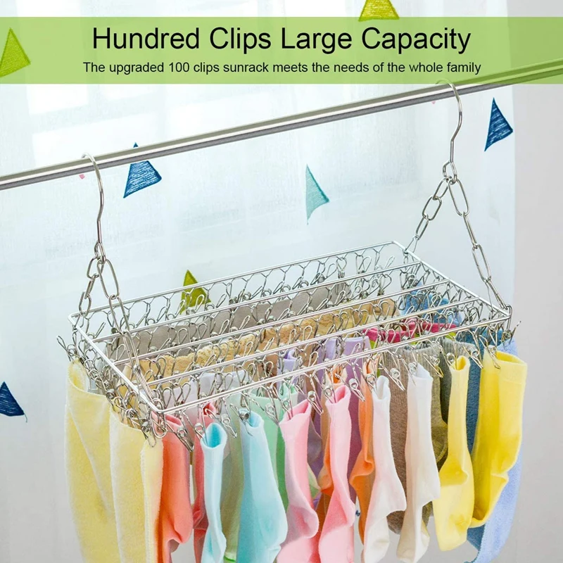 Многофункциональная сушилка для одежды, 100 зажимов из нержавеющей стали вешалка для сушки одежды для подвешивания одежды, полотенец