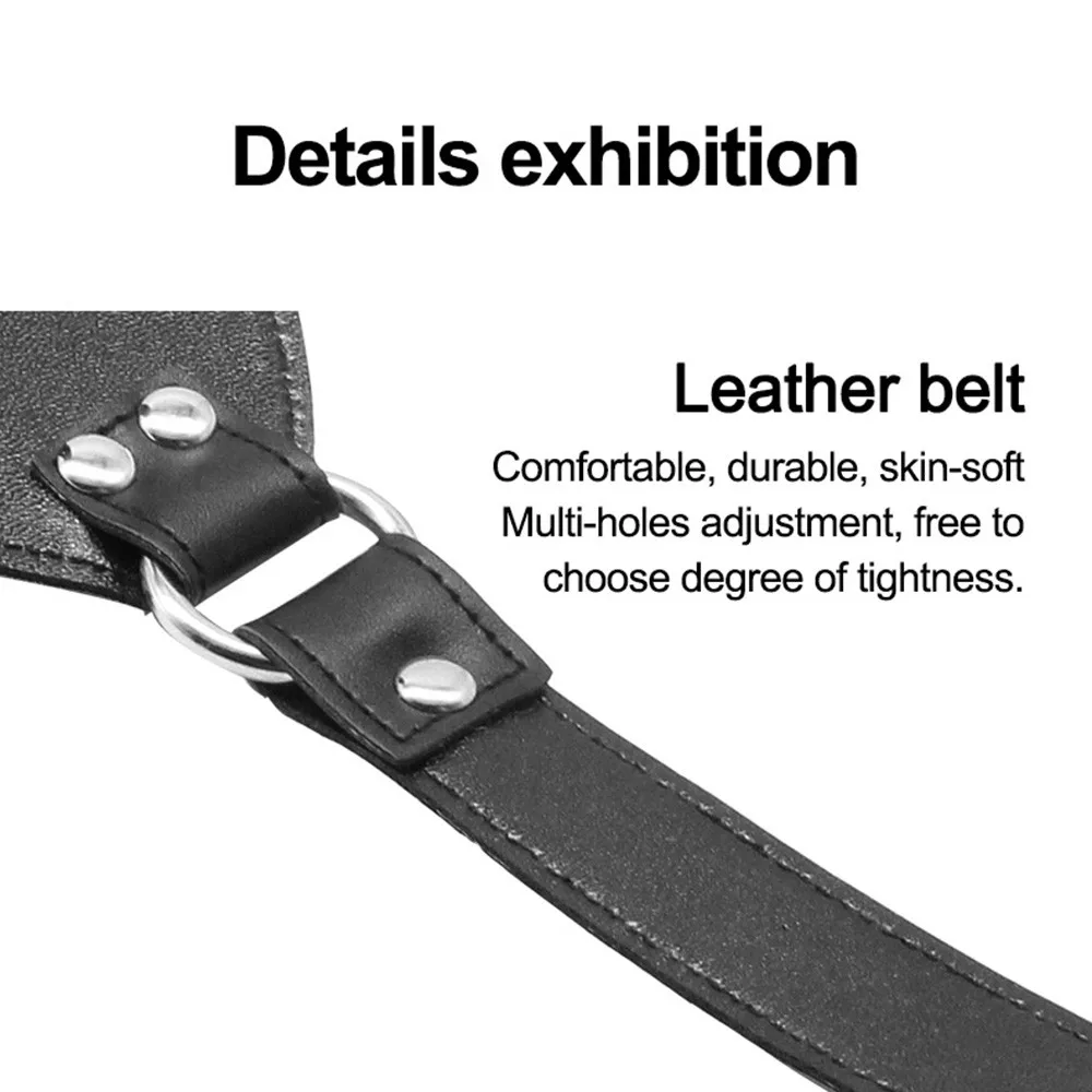 Характеристики: регулируемый (кляп), изменяемый размер (кожаный ремешок), замок (специальный стимул),