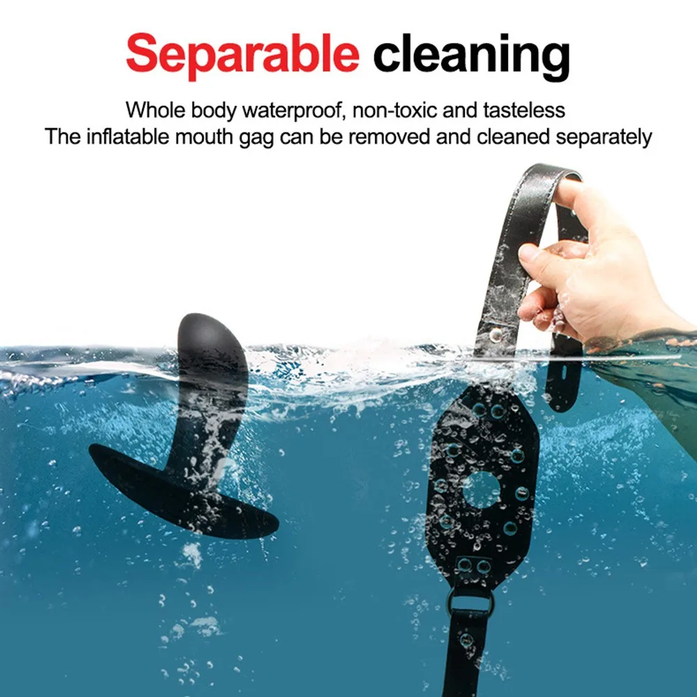 1. Надувной и регулируемый, кляп от маленького до большого, крайнее удовольствие заставляет вас кричать, но кляп предотвращает его;