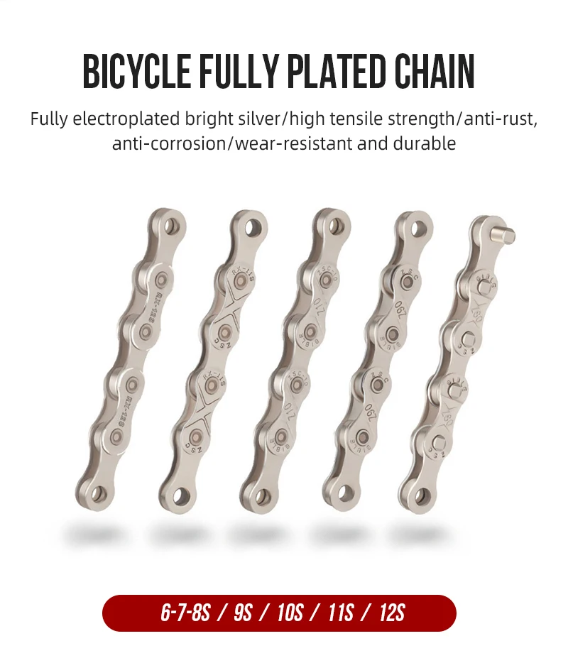Цепи 10/20/30-скорость цепи велосипеда Запчасти гальваническое покрытие под серебро для Mtb Серебряная цепочка Горный Дорожный велосипед аксессуары