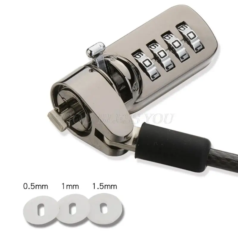 74.8in long carbon steel cable is cut-resistant and anchors to desks, tables, or any fixed structure