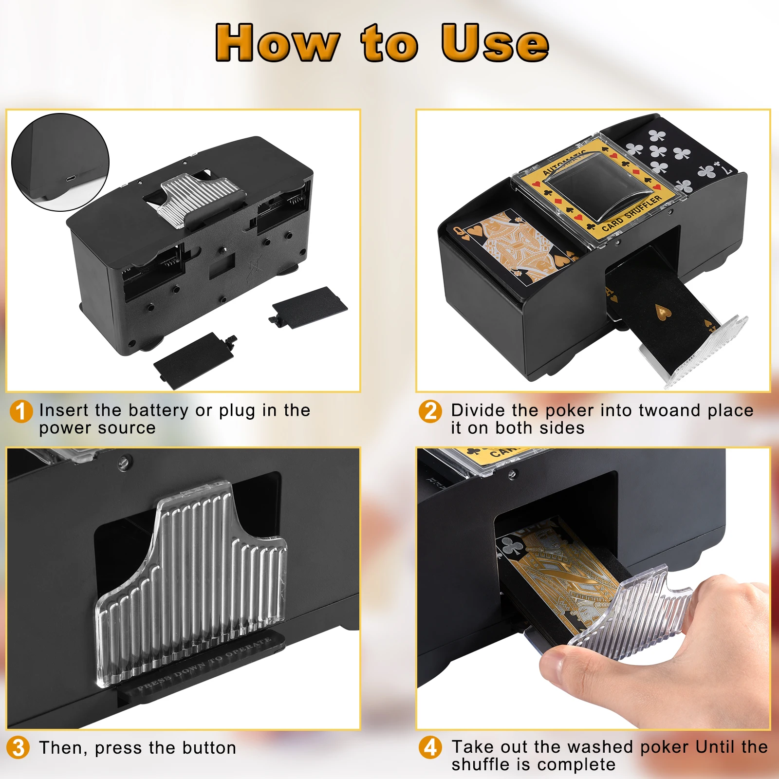 2. Передовые технологии-этот шуффлер использует инновационные шестерни с каждой стороны, чтобы равномерно и точно управлять игральными картами в лоток в быстром и плавном движении. Этот автоматический дозаторИдеально подходит для любой домашней игровой комнаты!