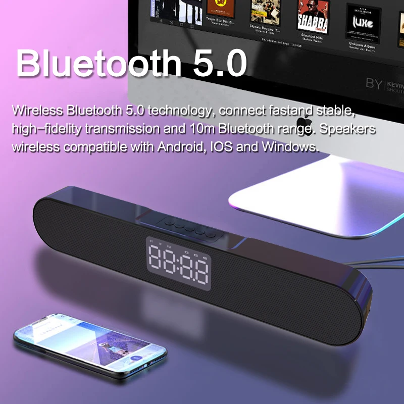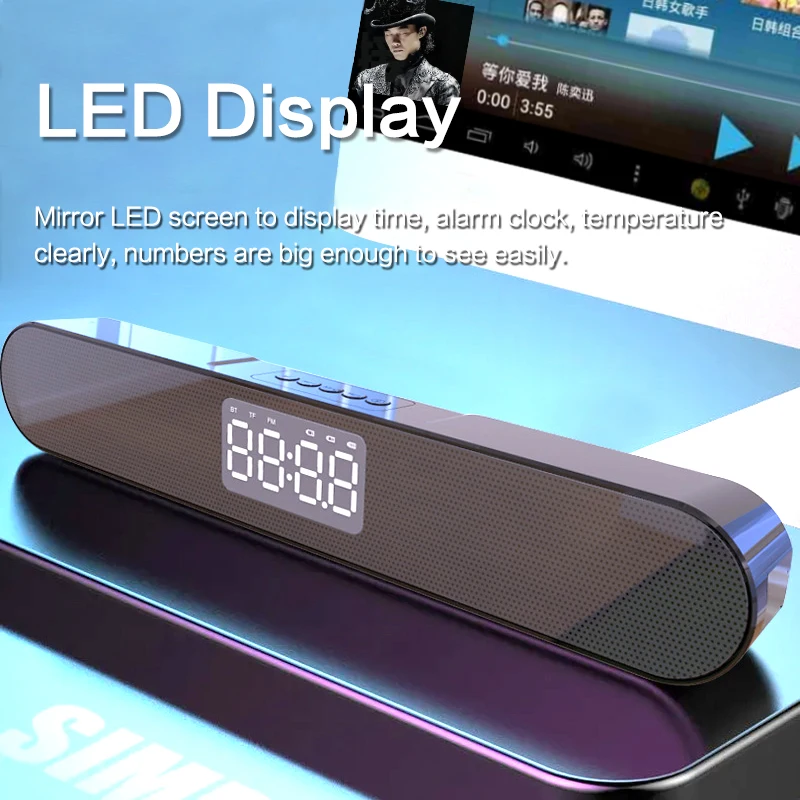 LED TV Sound Bar Alarm Clock AUX USB Wired Wireless Bluetooth Speaker Home Theater Surround SoundBar for PC TV Computer Speakers