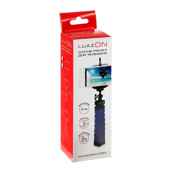 Штатив-тренога LuazON, настольный, гибкие ножки, крепление для телефона, высота 23 см, синий 4311055