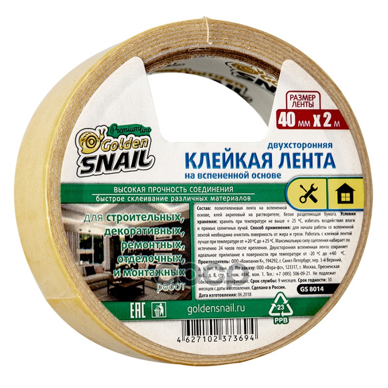 Отзывы о Двухсторонняя Клейкая Лента На Вспененной Основе Gs 40 Мм Х 2 М 8014 GOLDEN SNAIL арт. GS8014 |