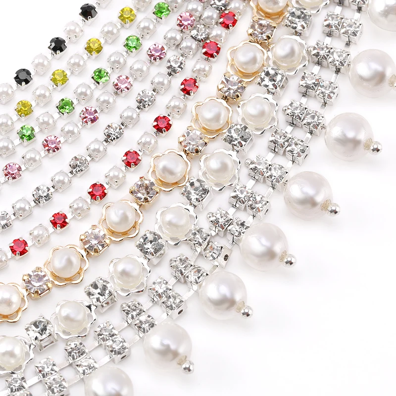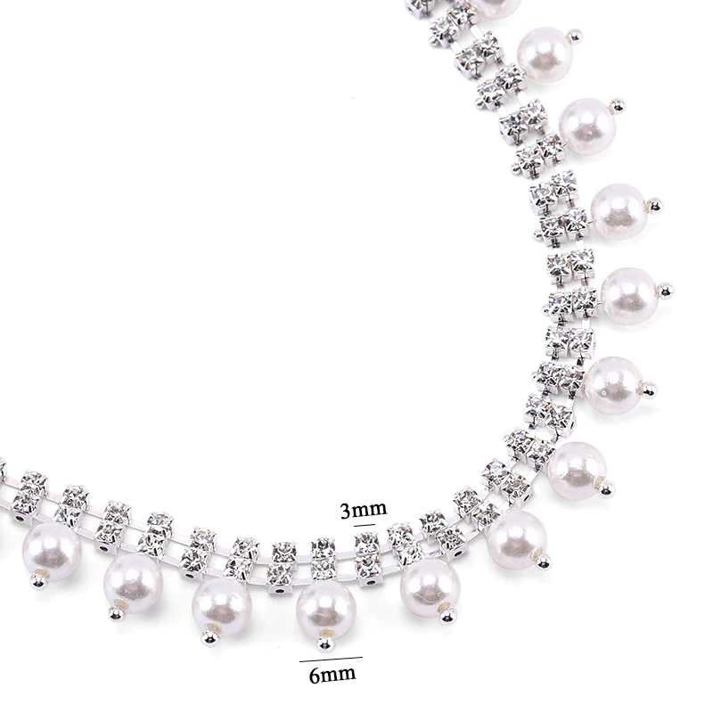 Каждая часть цепочки-стразы изготовлена из высококачественных материалов, основа прочная, стразы-прозрачные и яркие, а жемчуг-чистые. Он используется для длительного времени и его нелегко сломать.