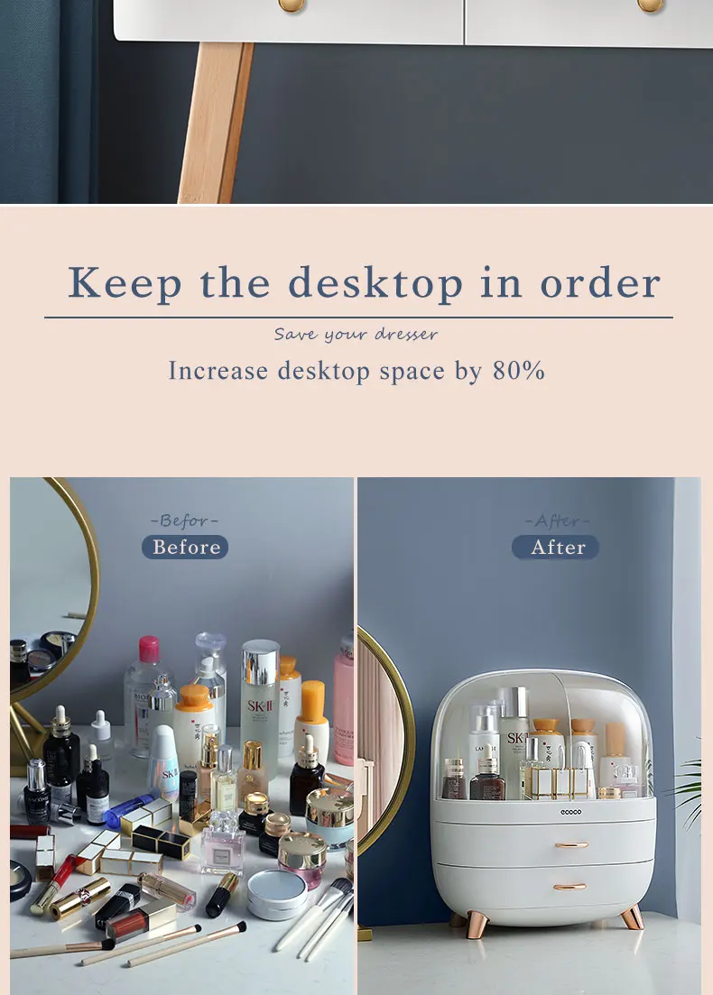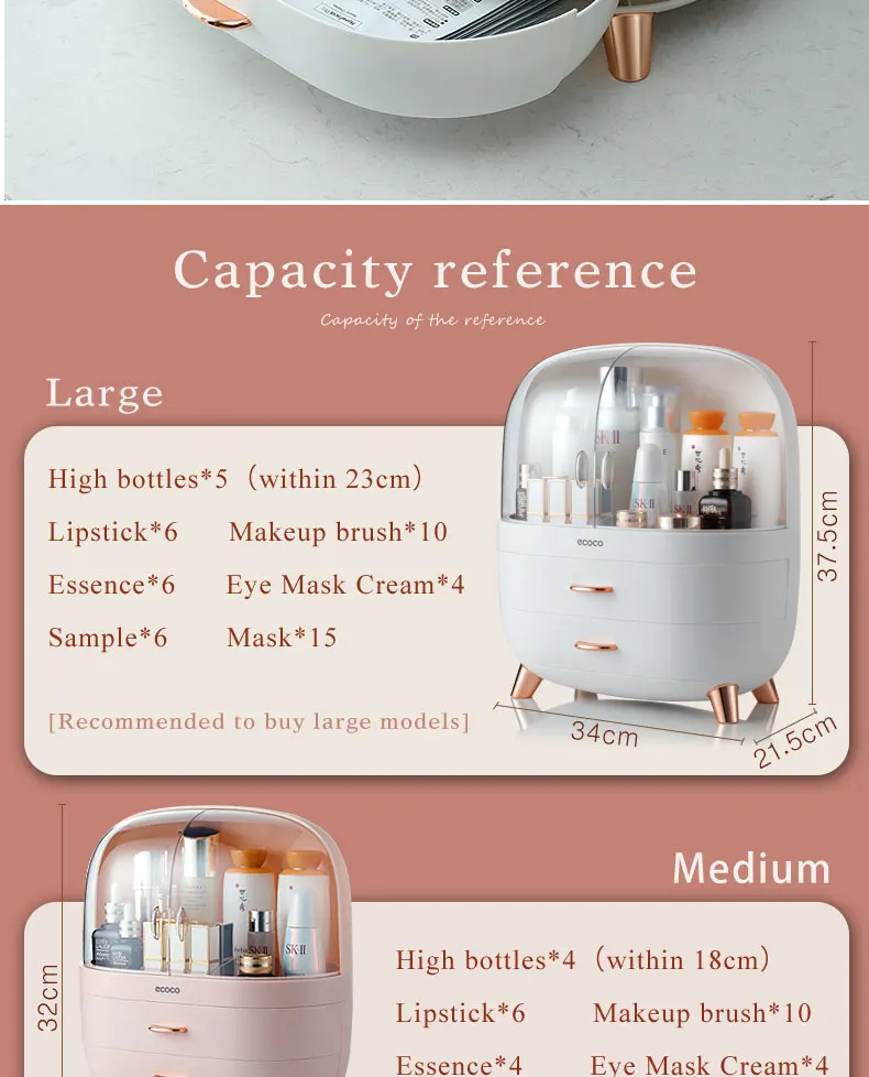 3. Большая емкость: можно разместить косметику высотой до 21 см. 2 слоя Ящики для хранения.