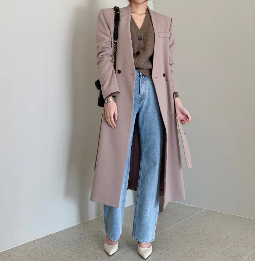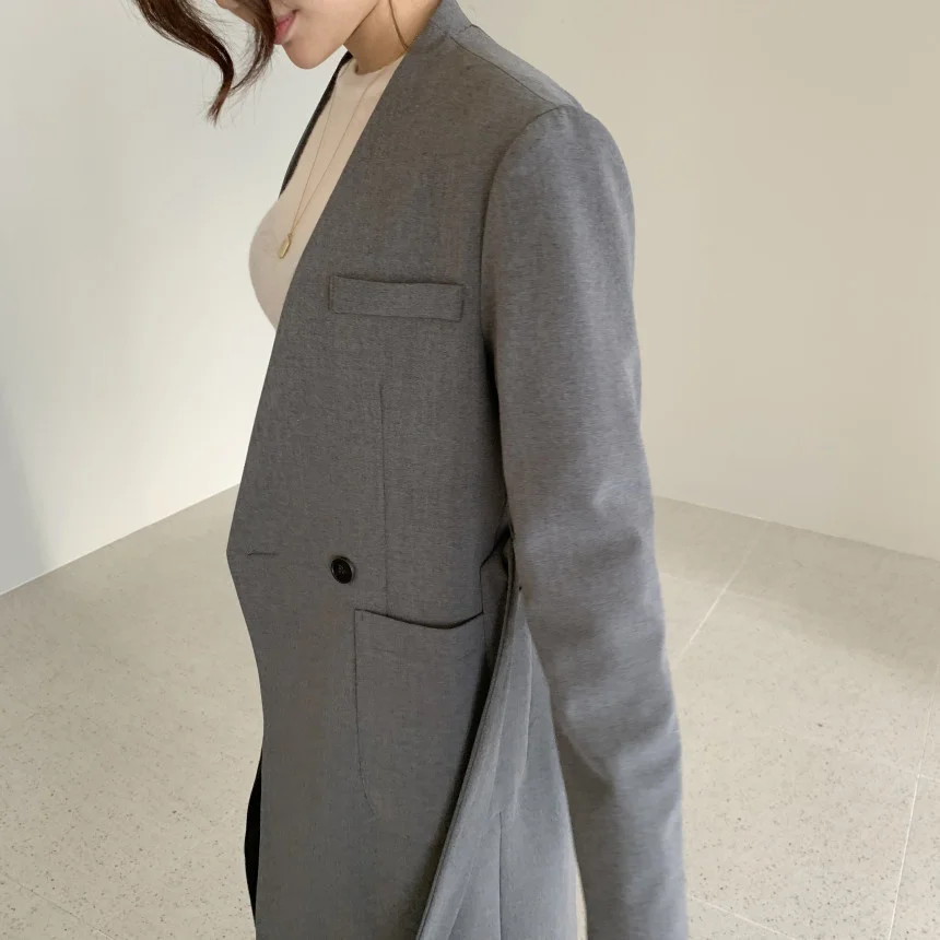 Отзывы о Женский блейзер с V-образным вырезом длинным рукавом и разрезом | Женская одежда