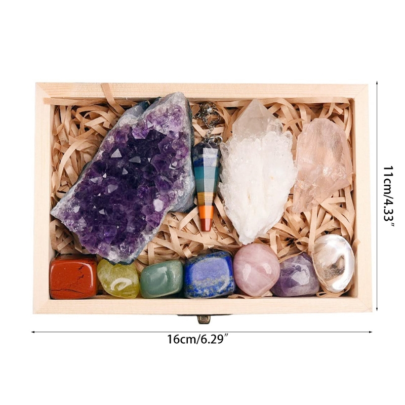 Seven Chakra Балансирующий энергетический Подарочный набор с деревянной коробкой, сверкающие камни, розовый кварц, аметист, кластер, хрустальные точки N0PAOOTDTY