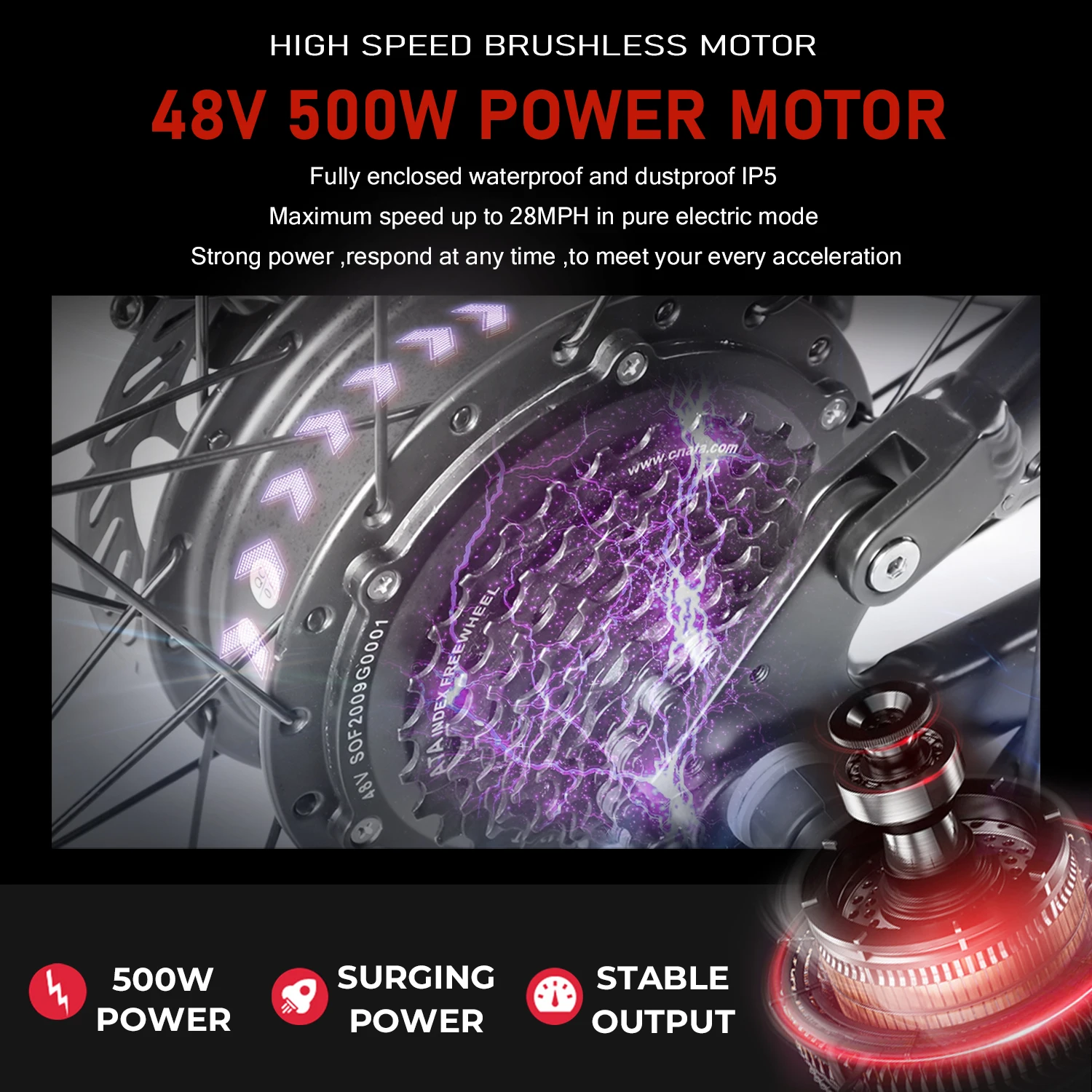 Полностью закрытый водонепроницаемый и пылезащитный IP5. Максимальная скорость до 28 миль/ч в чистом электрическом режиме. Сильная мощность, отвечайте в любое время, чтобы удовлетворить все ваши ускорение. Имеет смысл активировать режим подъема, когда вы едете в гору, в противном случае, задняя подвеска, как правило, выключается, когда вещи становятся крутыми, что еще больше замедляет угол трубки сиденья. Благодаря мощному мотору мощностью 500 Вт eMTB легко поднимается и превосходит технические характеристики. С его гибкой обработкой, даже изгибы шпильки не создают проблем, и режим eMTB отлично удерживает импульс велосипеда, проходящего через пересеченную местность.