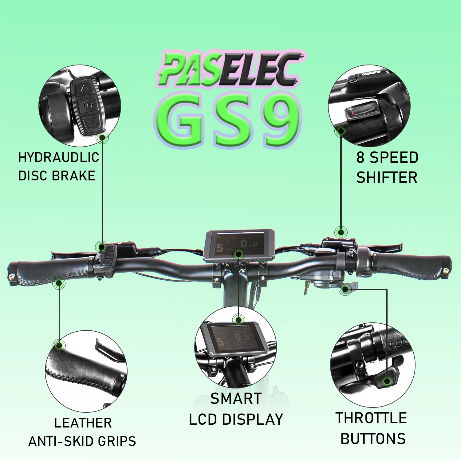 PASELEC GS9-это высококачественный горы eMTB, который был разработан с особой тщательностью и вниманием к деталям, поставляется с 27,5 "колеса, 13ah аккумулятор, вилка 100 мм и перемещение 40 мм сзади. Двигатель и аккумулятор легко интегрируются в раму, достигают полностью закрытого водонепроницаемого и пылезащитного уровня IP5. Помимо того, что двигатель очень мощный, он оснащен прогрессивным умным режимом помощи, который динамически регулирует уровень поддержки, чтобы соответствовать ситуации езды и тем самым делает его ненужным для переключения передач в плоской местности. Мы протестировали GS9 вокруг нашей штаб-квартиры и поместили его в сухой, а также в дождливые дни, GS9 никогда не блокирует вас, будь то внедорожные холмы, джунгли или городские дороги, снег и пляжи.