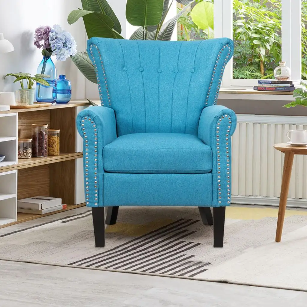 Приятная для кожи и дышащая льняная ткань для дополнительного комфорта Прочные резиновые деревянные ножки для отличной несущей способности С эргономичной спинкой и изогнутым подлокотником для снятия усталости Стильный внешний вид с пуговицами и отделкой гвоздиком 2 регулируемые подушечки для ног для дополнительной стабильности на неровном полу Подходит для гостиной, спальни, кухни, офиса и т. д. Легко собрать с подробными инструкциями