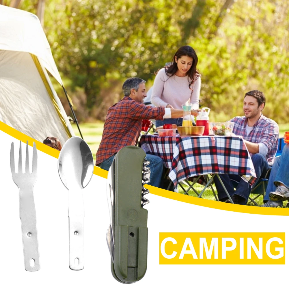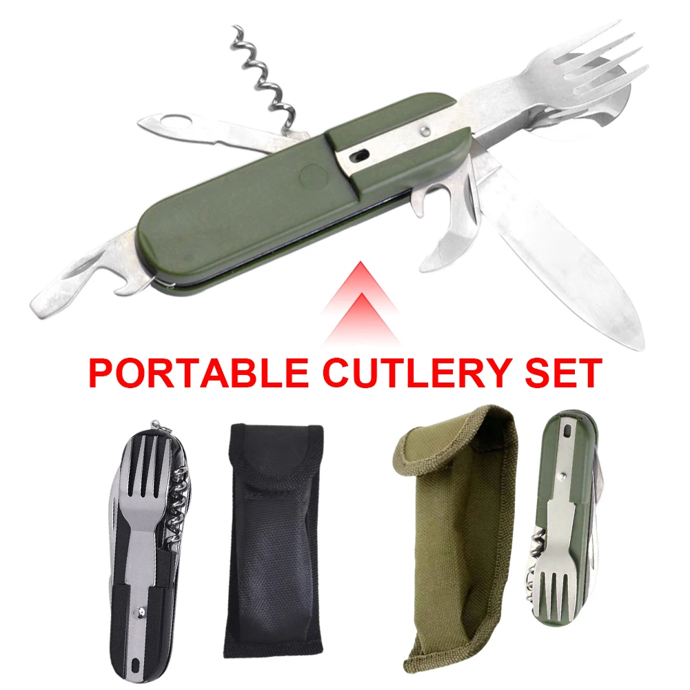 Отзывы о 7 в 1 портативные складные столовые приборы для кемпинга Столовые из нержавеющей
