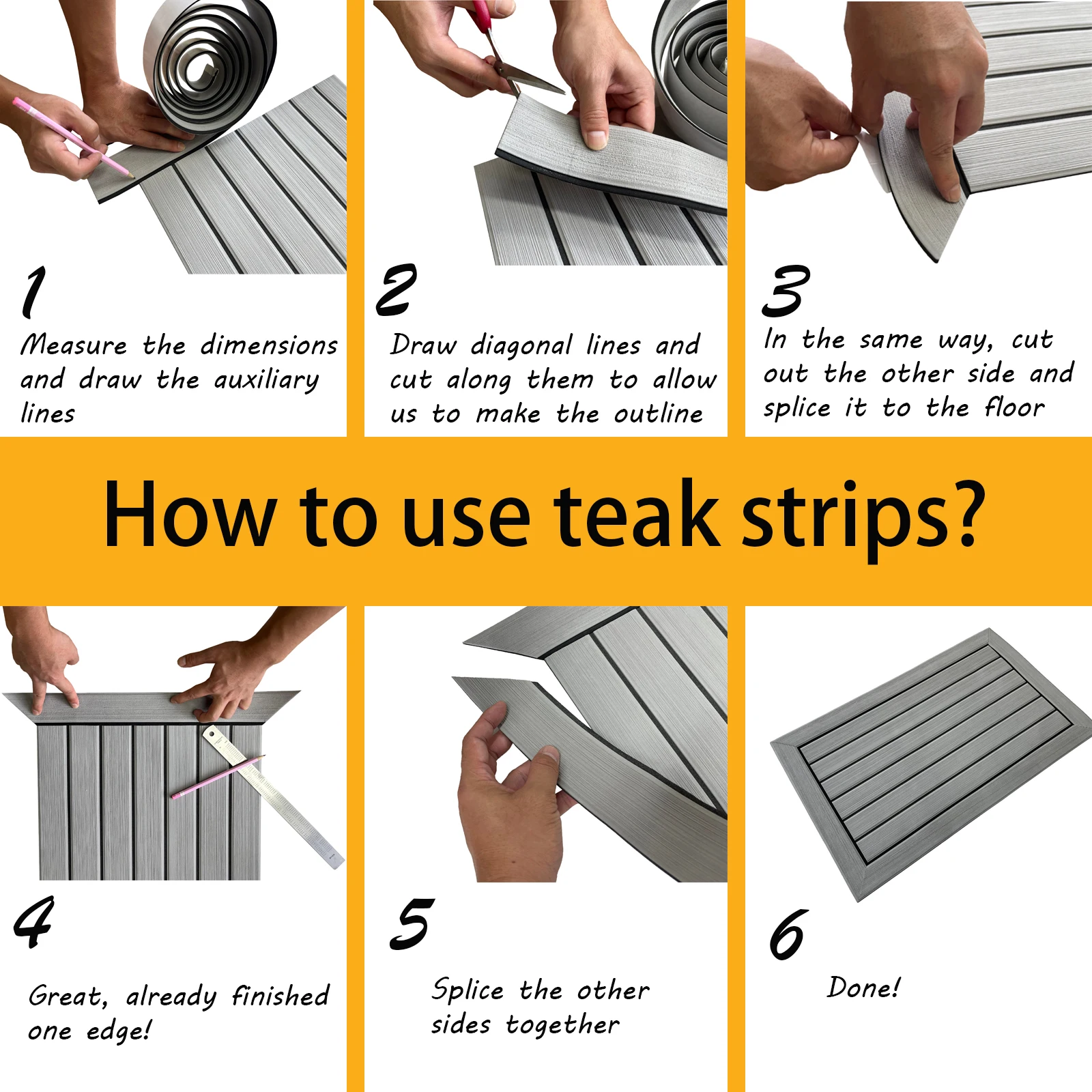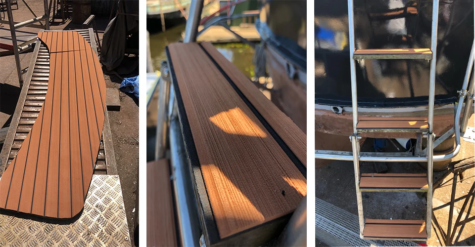 -Тиковый коричневый цвет поверх черного и может быть легко отрезан, чтобы соответствовать практически любой поверхности на лодке, где не скользит, или требуется защита поверхности лодки.