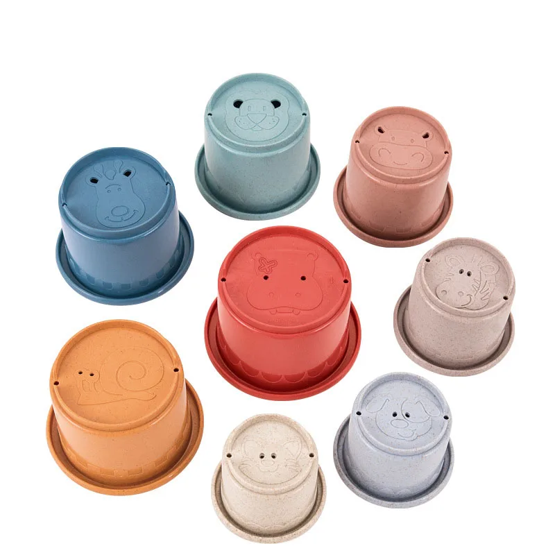 Монтессори детские игрушки Пшеничная солома песочные часы гнездящееся штабелирование чашек с рельефными животными персонажами для крытых уличных ванной и пляжа забавная игрушка