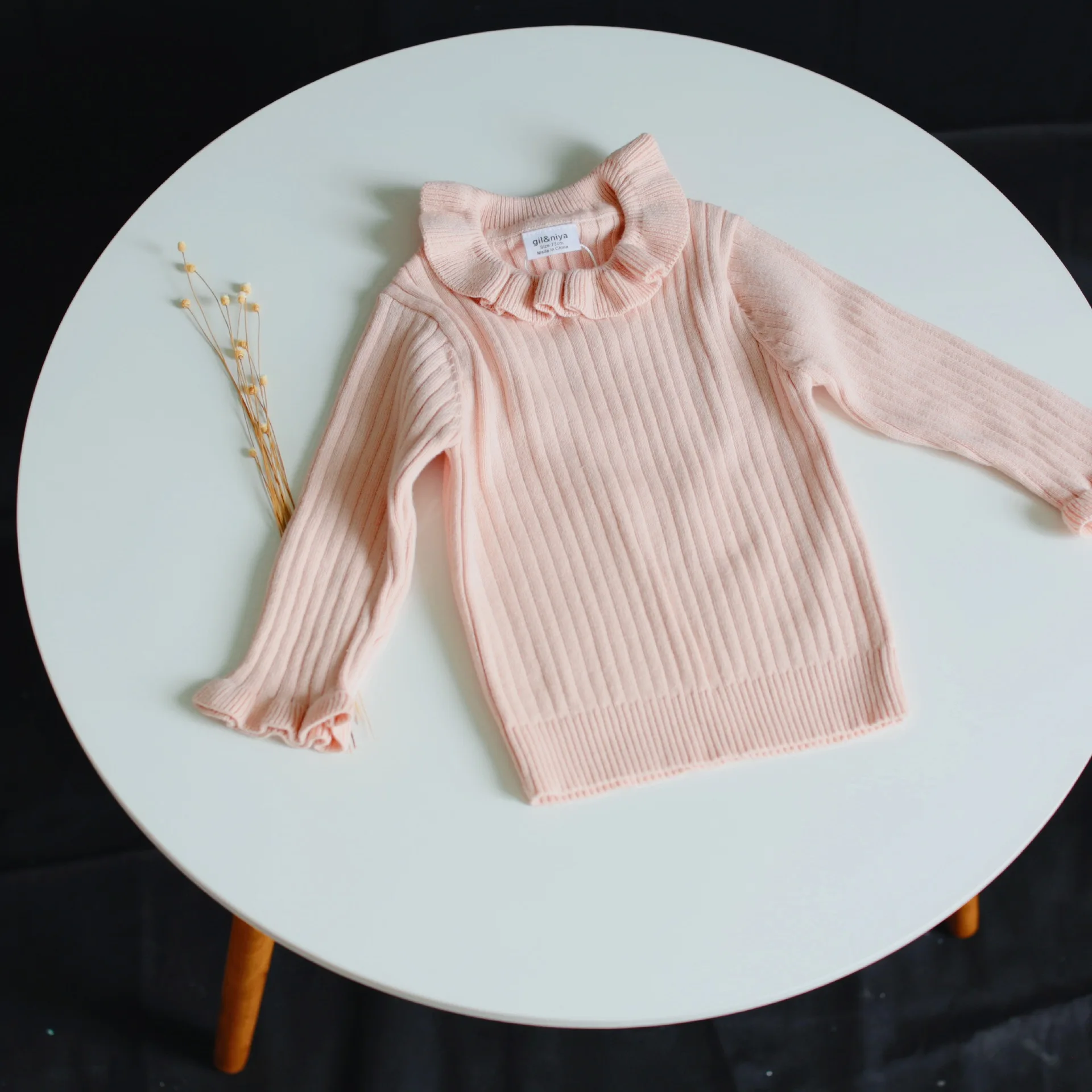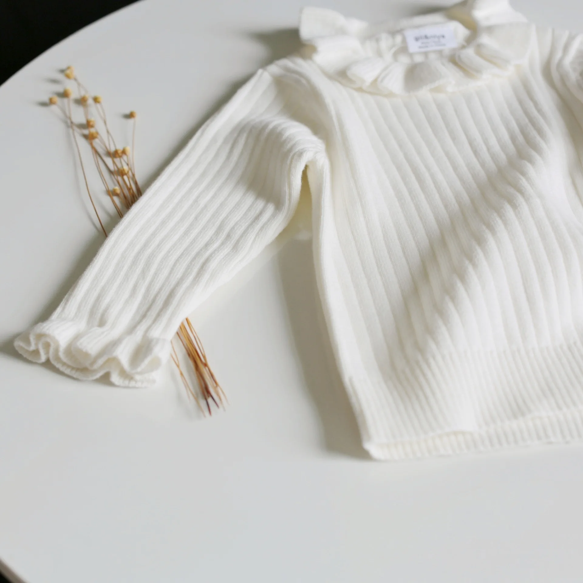 1-5Y Kids Knitted Pullover Girl's Knitted Ruffle Lantern Long Sleeve Bottoming T Shirt Princess Toddler Kids Sweater Top Clothes